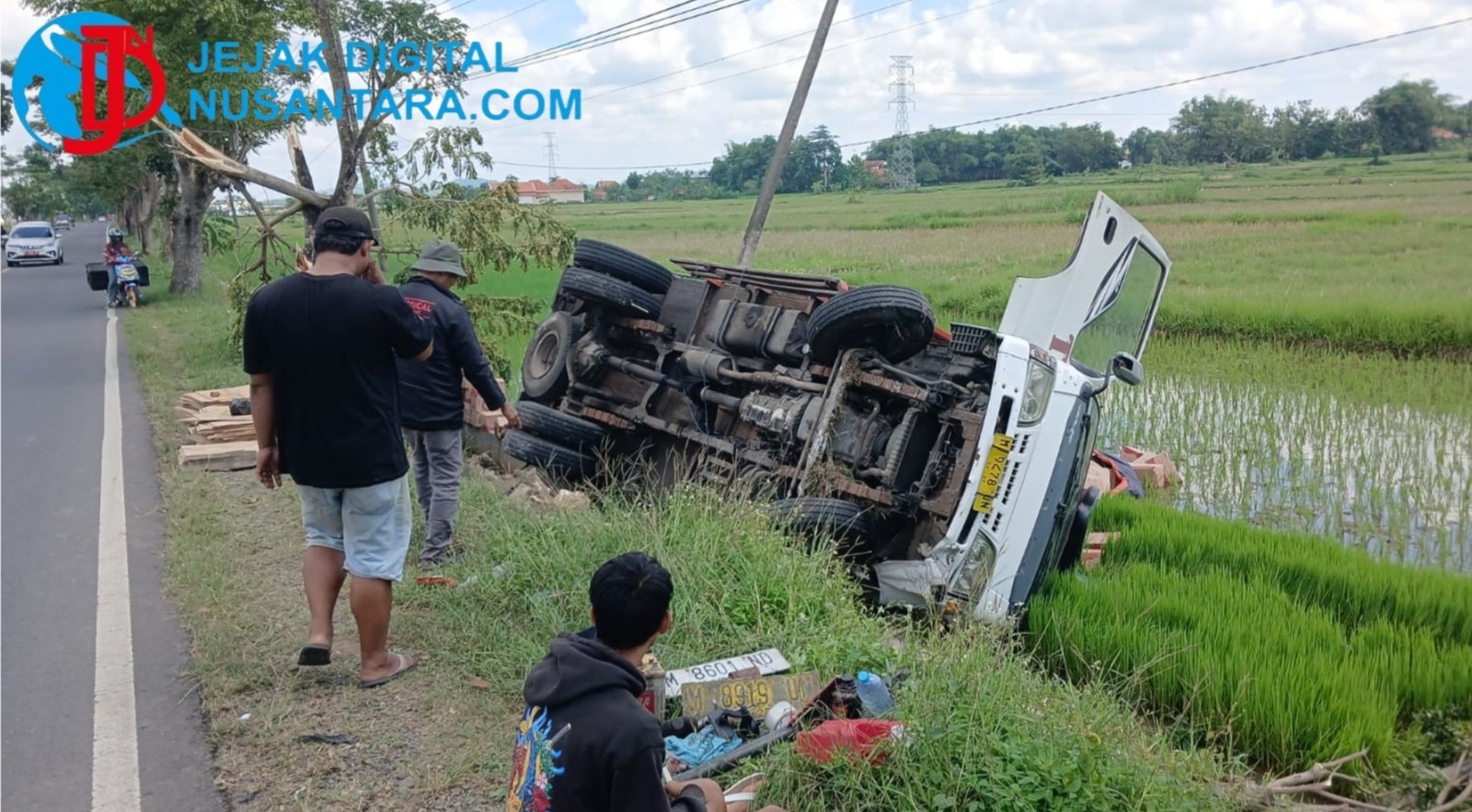 SAMPANG || JDN – Kecelakaan tunggal terjadi di Jalan Raya Desa Jrengik, Kecamatan Jrengik, Kabupaten Sampang, Madura, pada Selasa (7/4/2026) dini hari pukul 03.00 WIB. Sebuah truk bernomor polisi M 9478 UN yang dikemudikan oleh Nurul Hidyat terperosok ke dalam parit hingga merusak lahan persawahan warga.