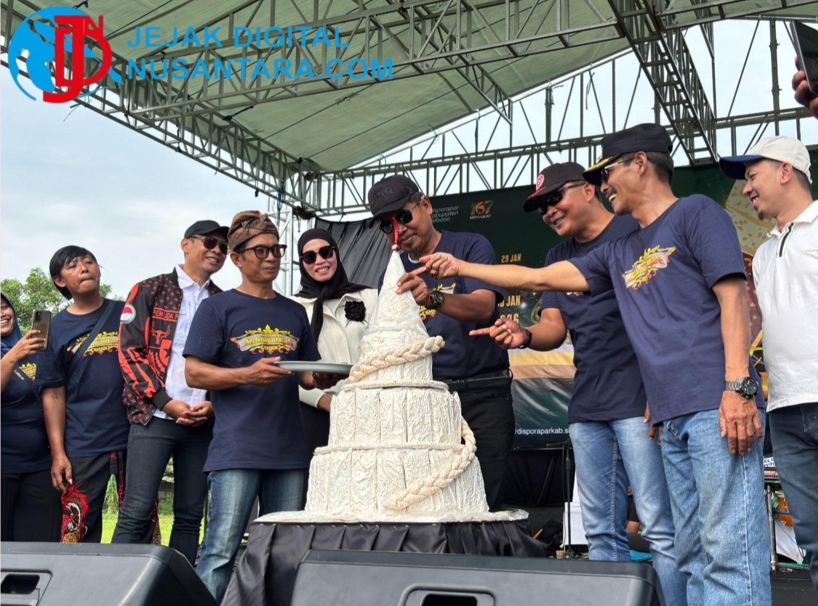 SIDOARJO || JDN – Desa Sedengan Mijen, Kecamatan Krian, kembali mengukuhkan eksistensinya sebagai sentra penghasil tempe di Kabupaten Sidoarjo. Dalam rangka memperingati Hari Jadi Kabupaten Sidoarjo (Harjasda) ke-167 sekaligus menyambut bulan suci Ramadhan, warga setempat menggelar tradisi Ruwat Desa dengan menyajikan Tumpeng Tempe Raksasa setinggi 14 meter, Minggu (1/2/2026).
