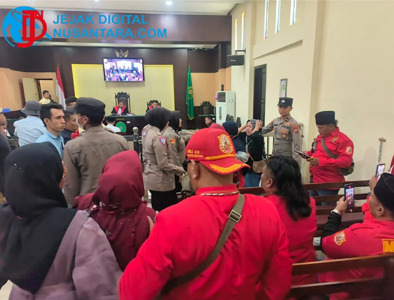 Pantauan di lapangan menunjukkan situasi sempat memanas saat massa mencoba merangsek masuk ke halaman kantor Pengadilan Negeri. Adu mulut dan saling dorong antara massa dan barisan pengamanan tak terhindarkan.