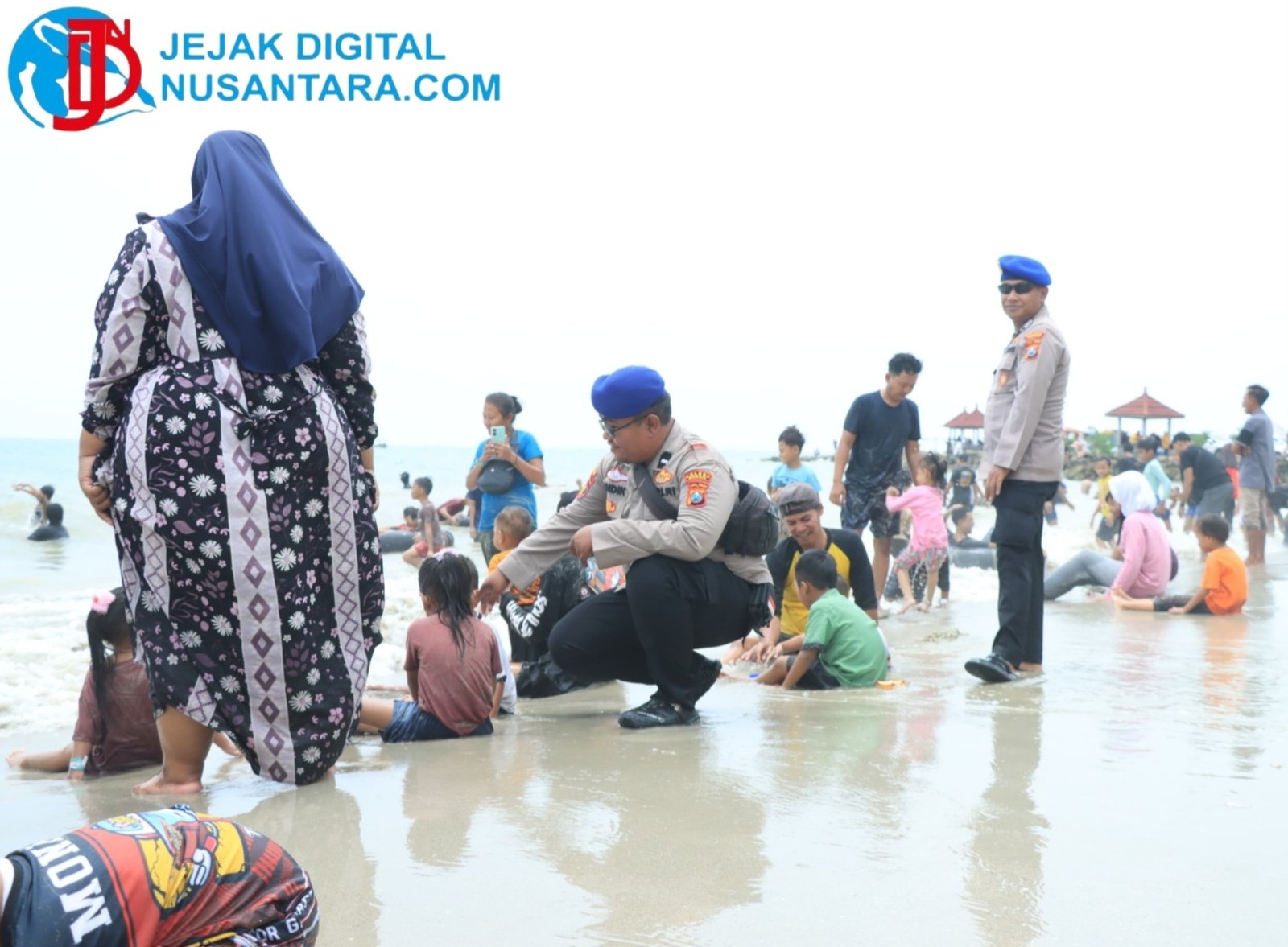 Pantauan di lokasi menunjukkan personel Polsek Panceng dan Polres Gresik aktif melakukan patroli dialogis. Petugas secara berkala memberikan edukasi melalui pengeras suara, mengingatkan orang tua untuk mengawasi anak-anak secara melekat, memastikan penggunaan pelampung, serta mematuhi batas zona renang yang telah dipasang petugas.