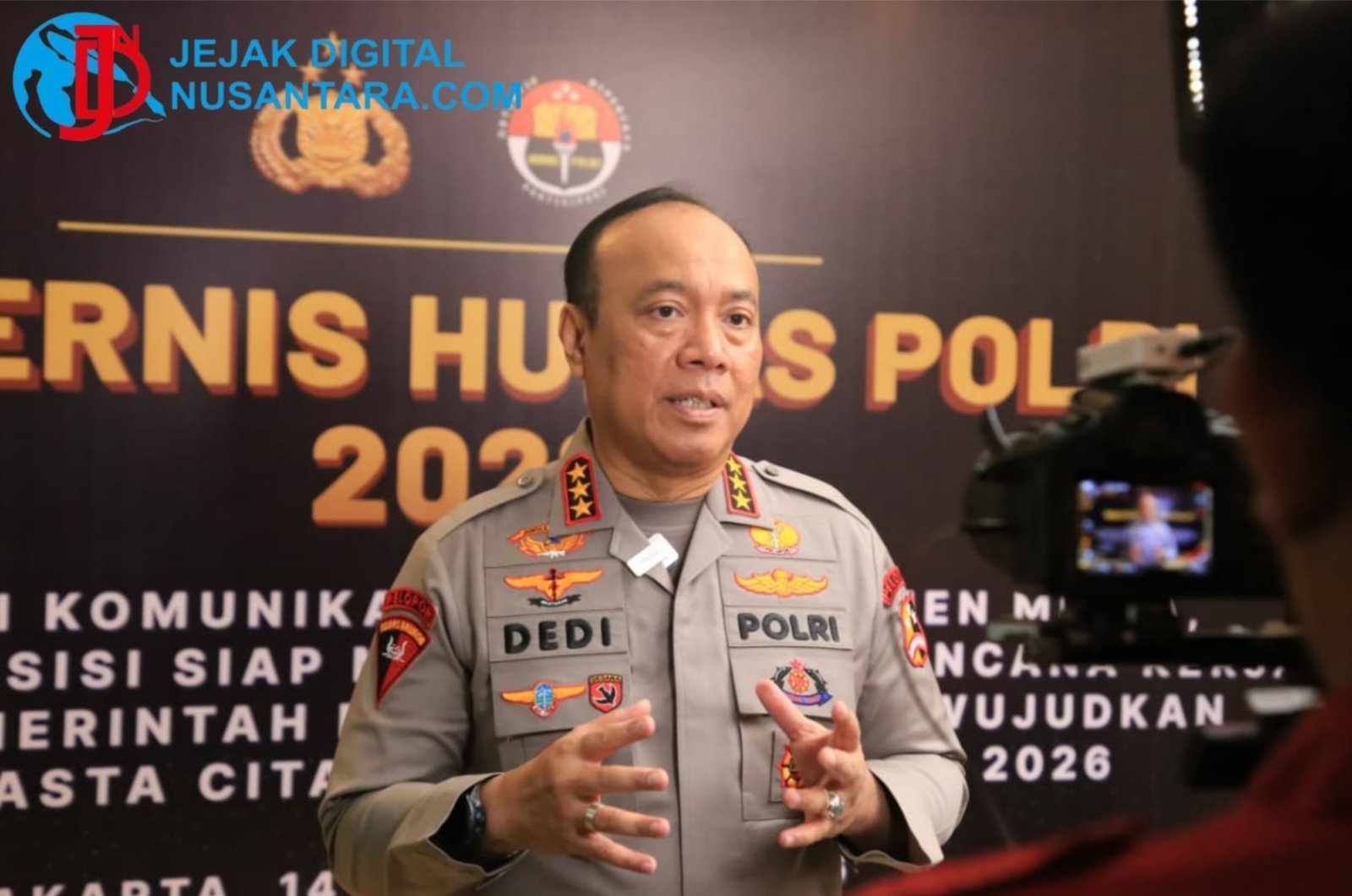 Jakarta || JDN – Wakapolri Komjen. Pol Dedi Prasetyo memberikan pengarahan strategis kepada jajaran dalam kegiatan Rakernis Humas Polri 2026 di Jakarta (15/04). Dalam arahannya, Wakapolri mengapresiasi peningkatan kualitas strategi manajemen media yang dinilai semakin baik dari tahun ke tahun. “Humas adalah suara dan telinga institusi. Peran ini menempatkan Humas di garis depan sekaligus garis terakhir dalam menjaga marwah Polri,” tegas Komjen. Pol Dedi Prasetyo.
