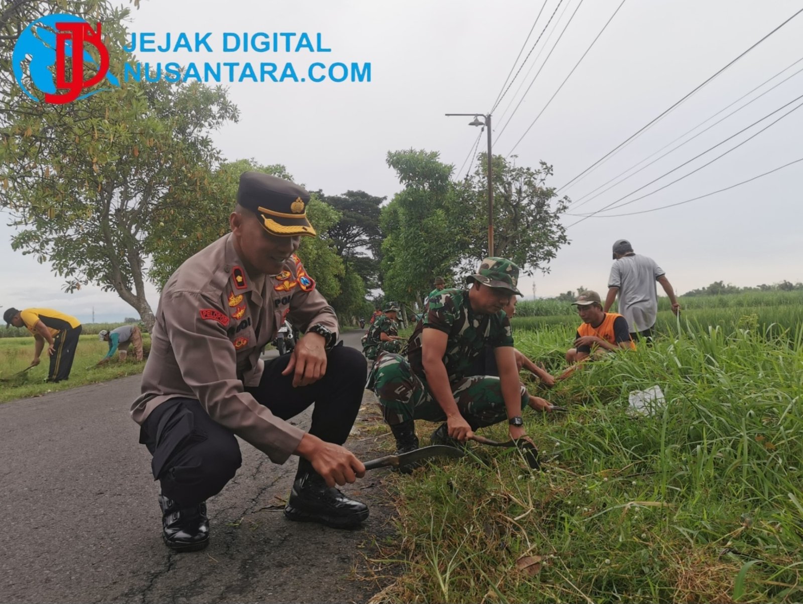 Pantauan di lokasi menunjukkan personel dari Brigif 16 Wira Yuda, Sat Brimobda Jatim Kompi I Batalyon C Pelopor, serta petugas DLHKP Kota Kediri bahu-membahu bersama warga mengangkut sampah dan merapikan vegetasi di sepanjang jalan utama kelurahan.